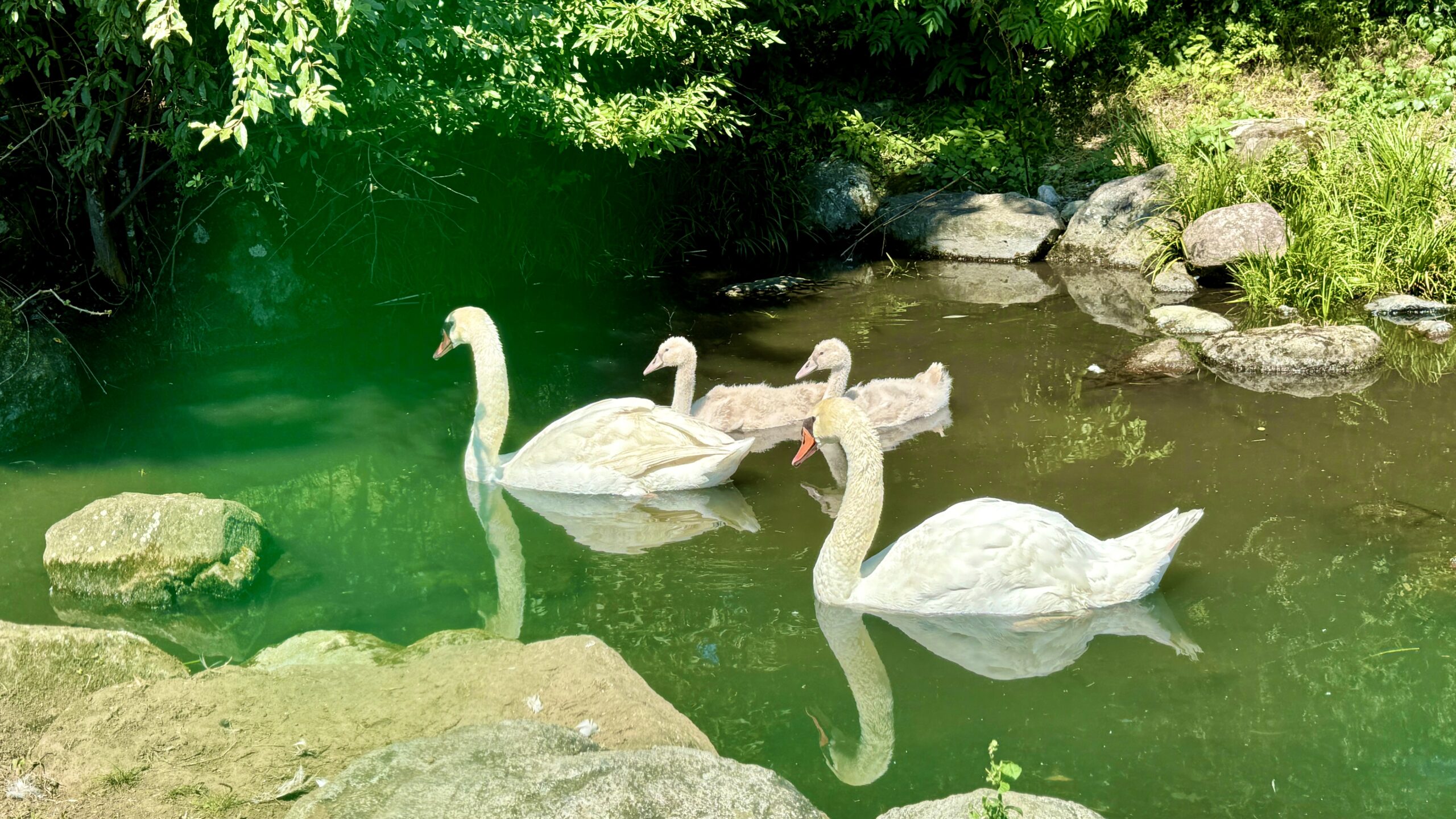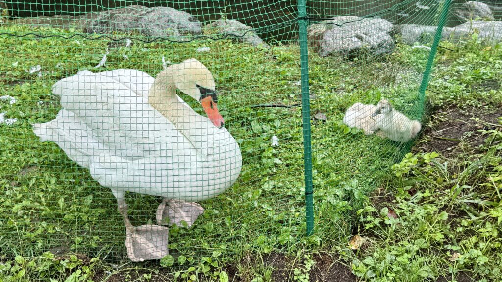 毎年ここで白鳥の赤ちゃんが誕生する。お母さん白鳥は雨の日も風の日も大切な卵をしっかりと抱いて温め、そして元気に誕生。独り立ちできるまでそばにいてしっかりと見守ります。