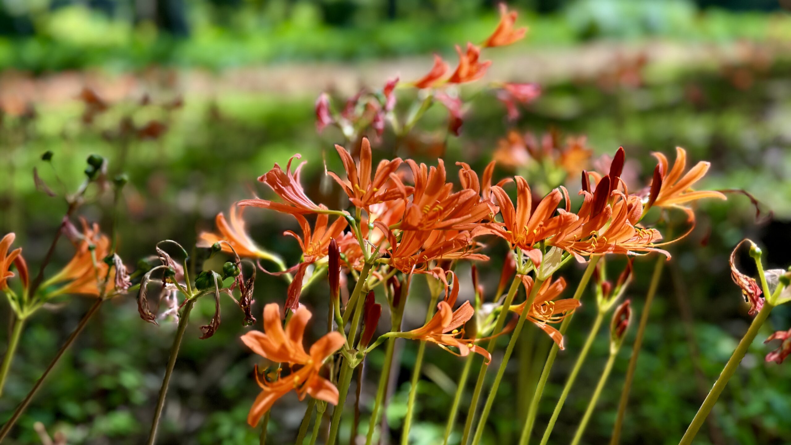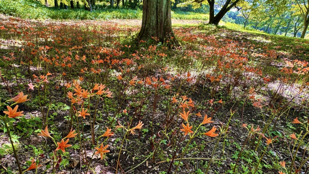 湖の両岸には近年 キツネノオオカミソリ が群生してきた。この季節の遊歩道の散歩が楽しくなる。