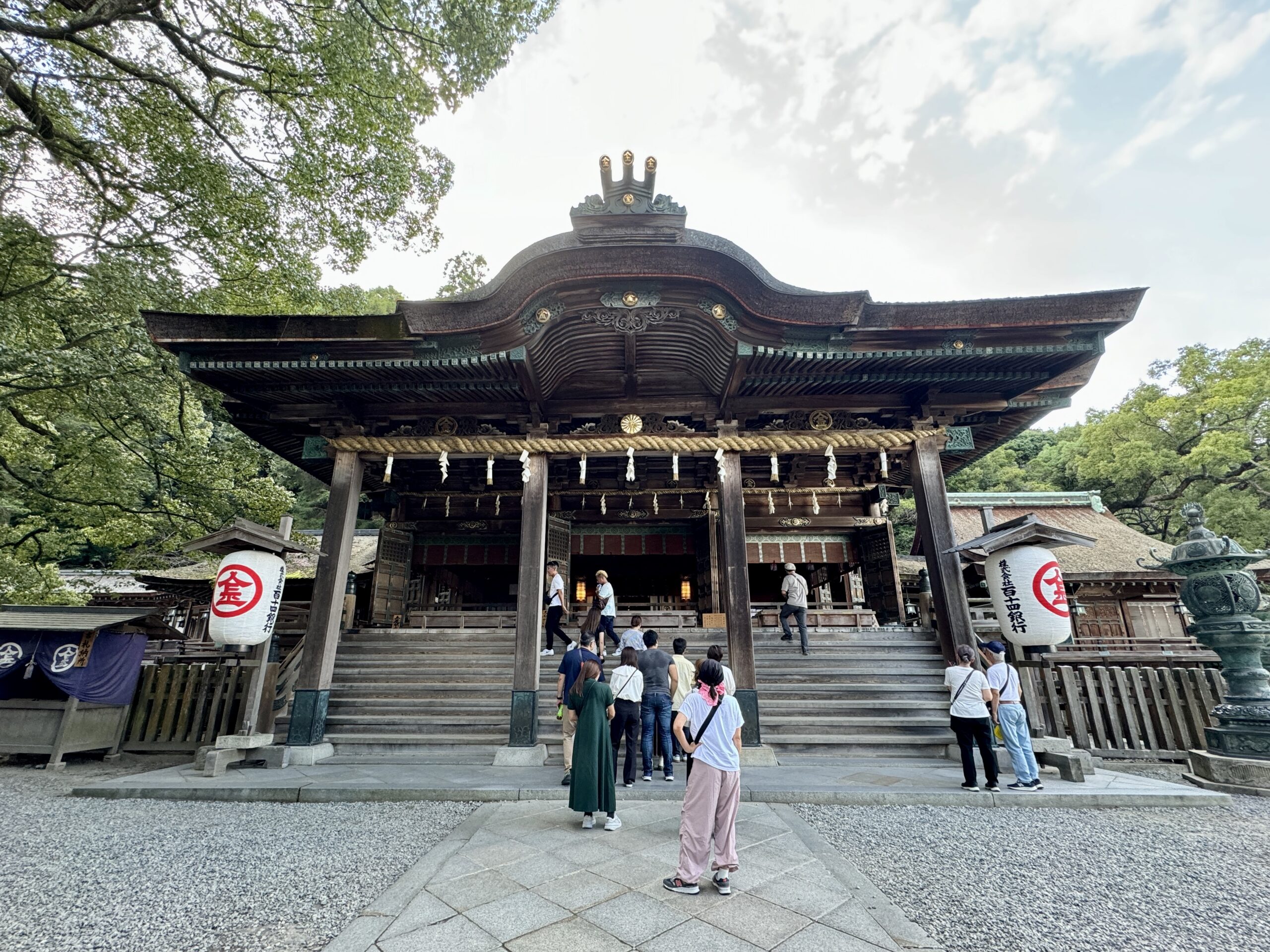 象頭山の中腹に位置するため参道のほとんどが石段で、御本宮までは 785段、奥社 (厳魂神社) までは 1368段ある。厳しい参拝である分、登り切った時の達成感は格別でパワースポットとしての人気が高い。