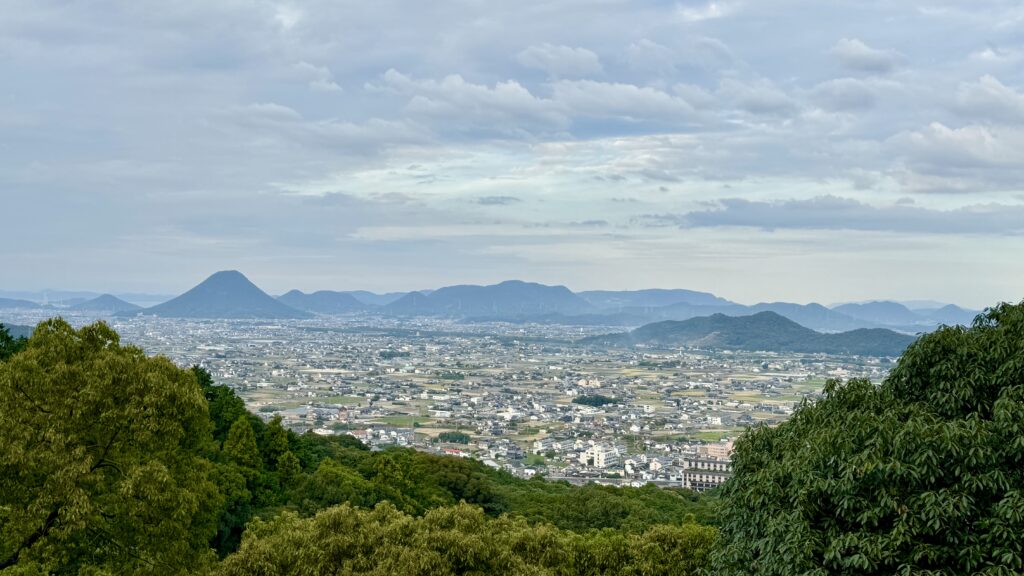 本宮の横からの姿と、ここの展望台からみえる風景。