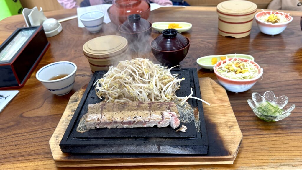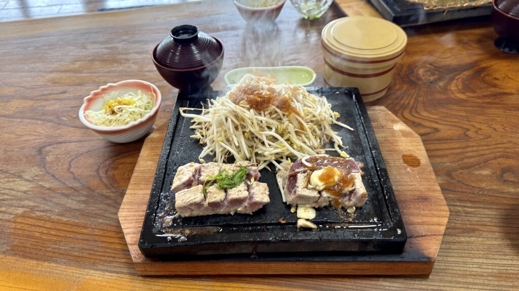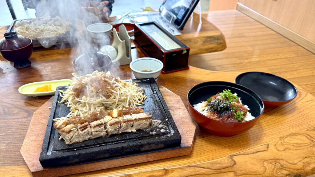 マグロステーキ単品の他、海鮮丼とのセット、2種の組み合わせメニューがあり楽しくおいしく頂ける