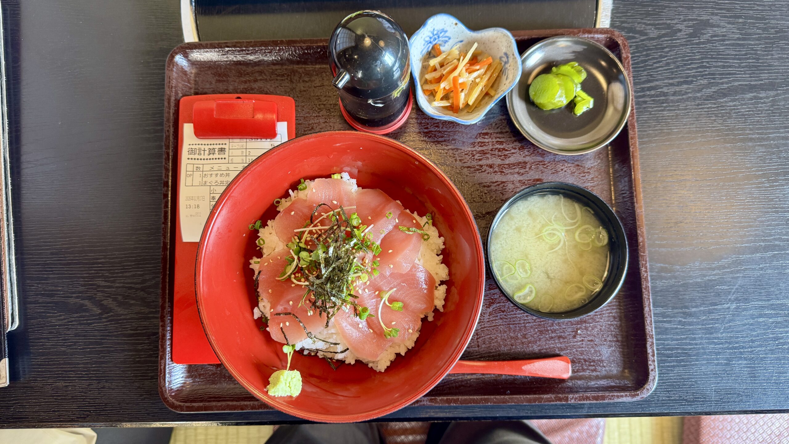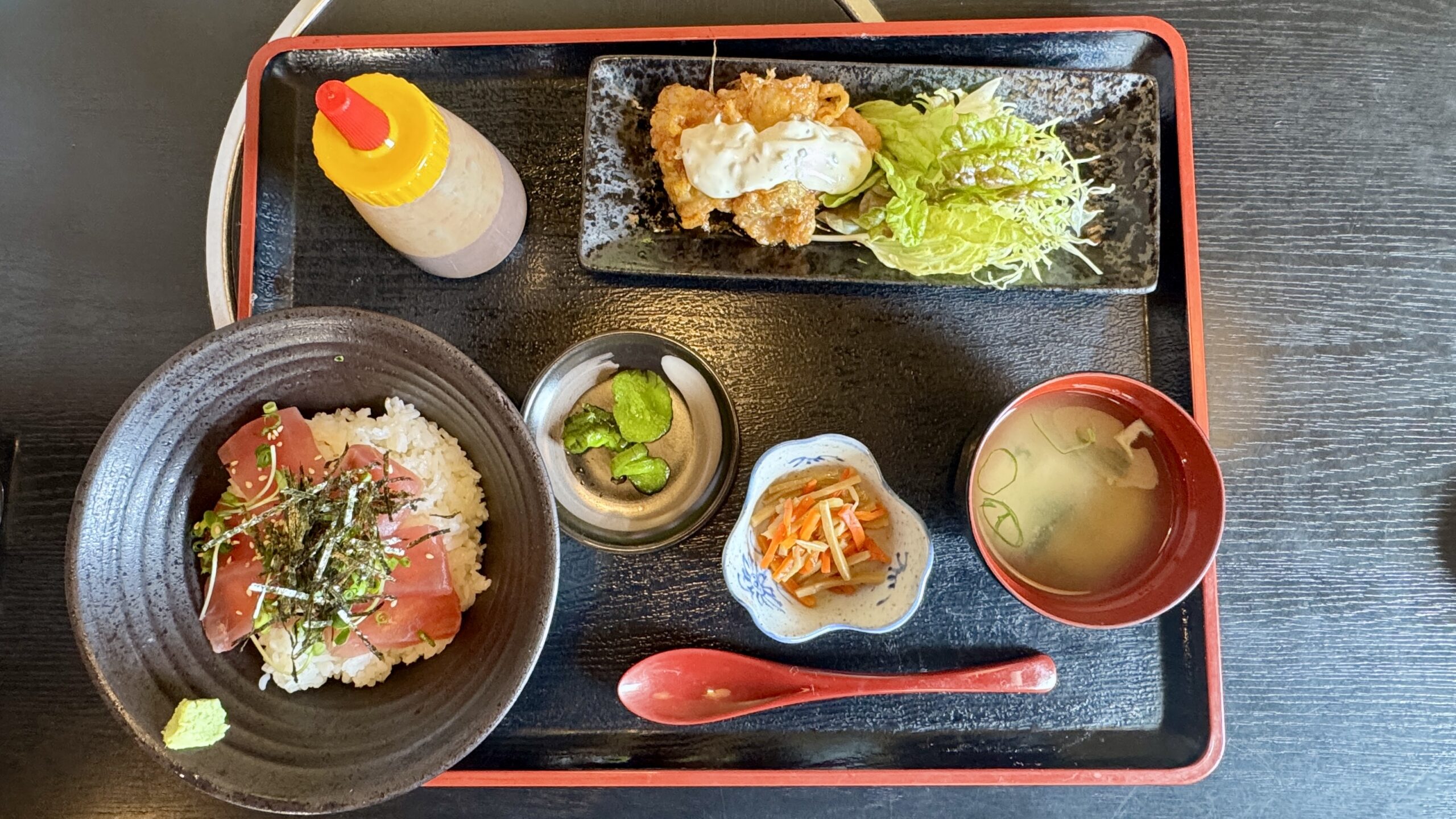 マグロステーキ単品の他、海鮮丼とのセット、2種の組み合わせメニューがあり楽しくおいしく頂ける