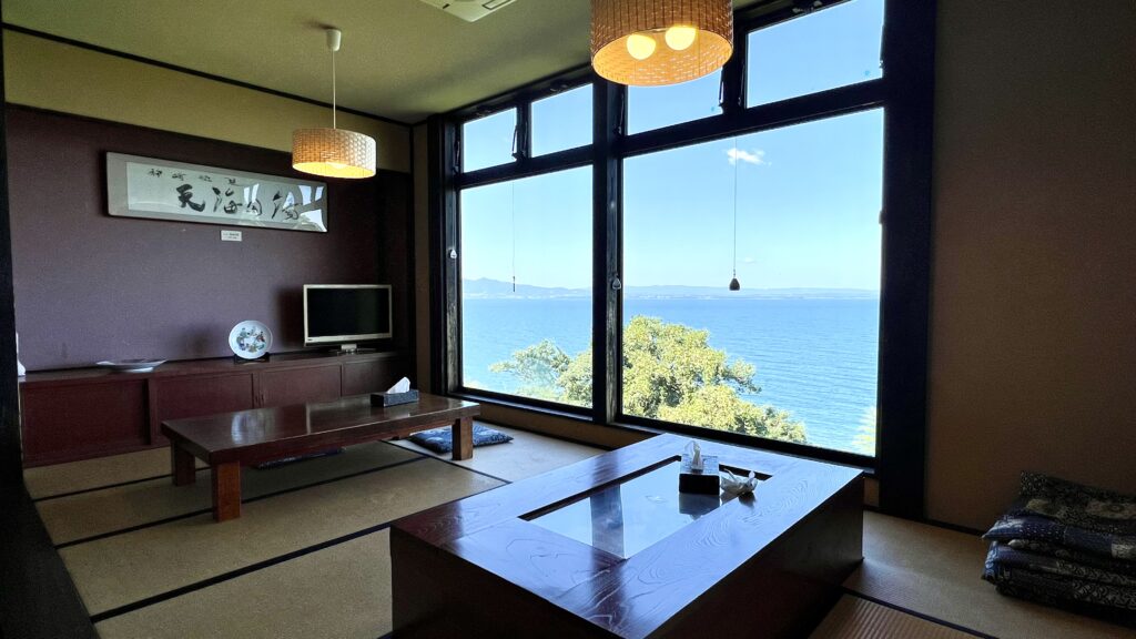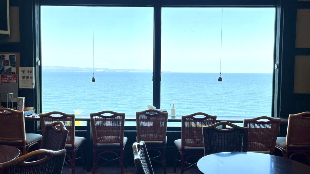 待合休憩室からも別府湾を眺めながらゆっくりできる。