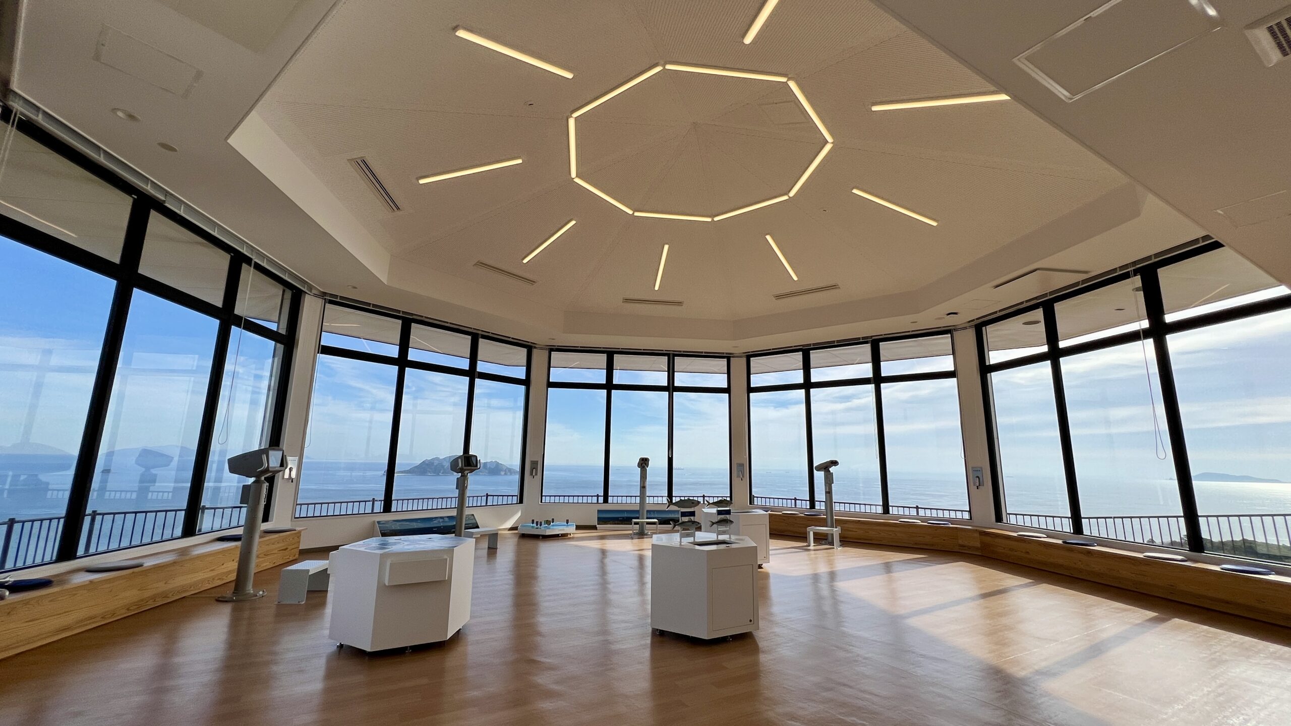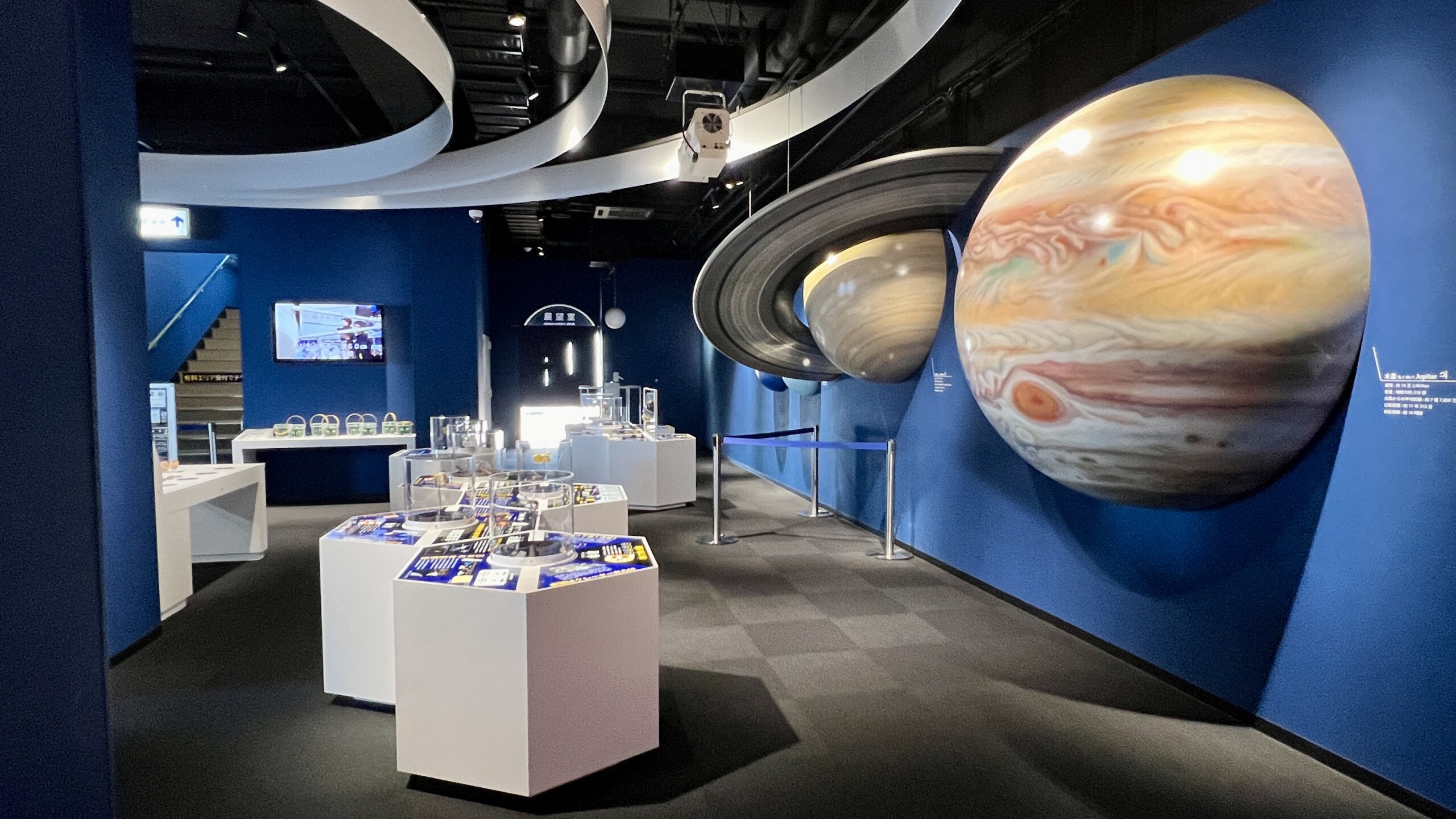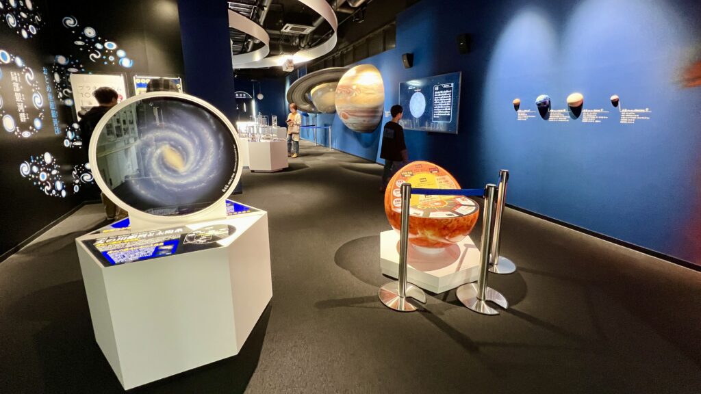 展示ホールでは太陽系惑星の模型や展示品を観て触って宇宙の学び、展望室では海の学びやパズルを楽しむことが出来る。