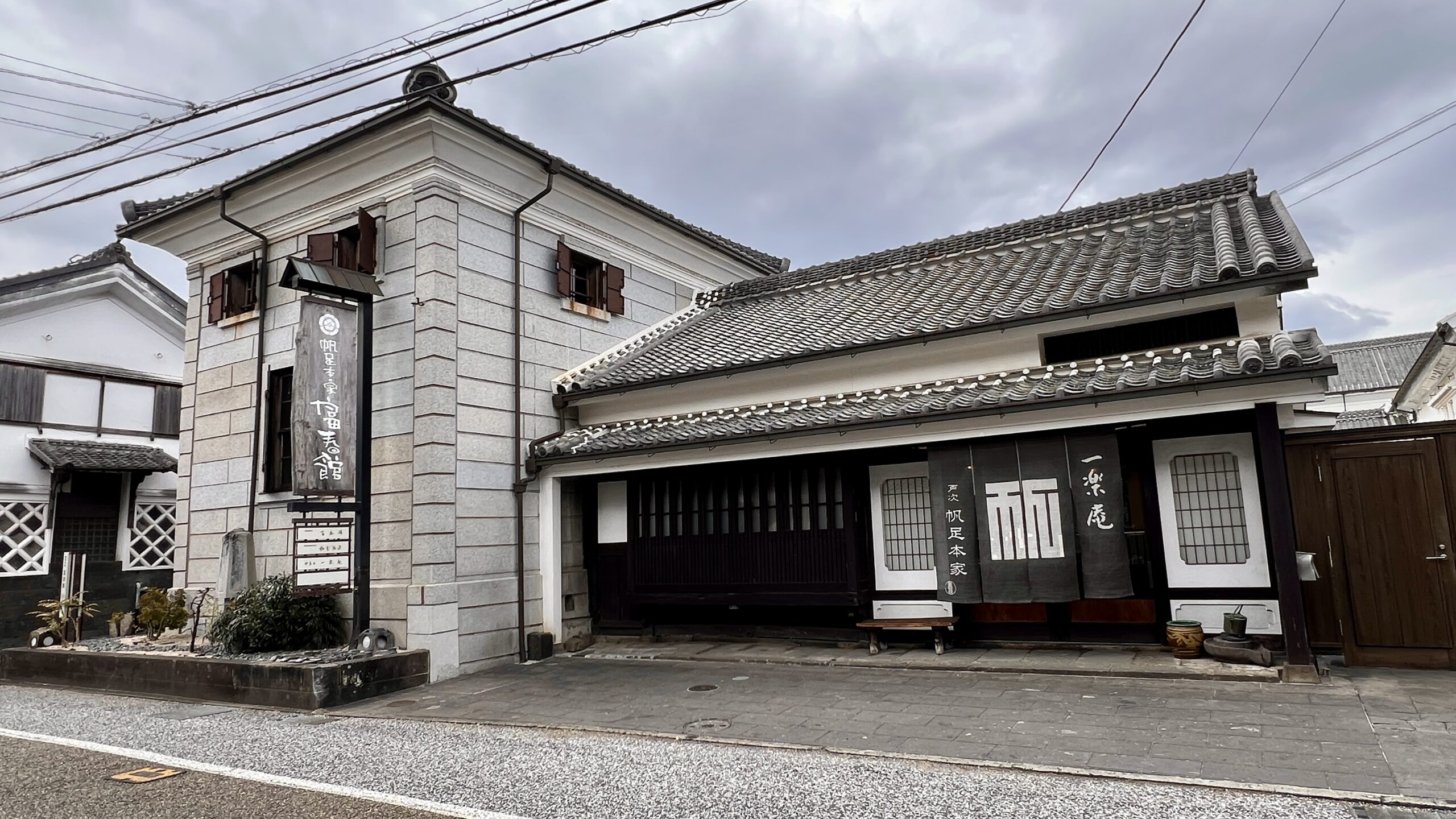 約2000坪の敷地に江戸初期から昭和初期にかけて建てられた母屋や酒造蔵など歴史的建造物が当時のまま点在している。