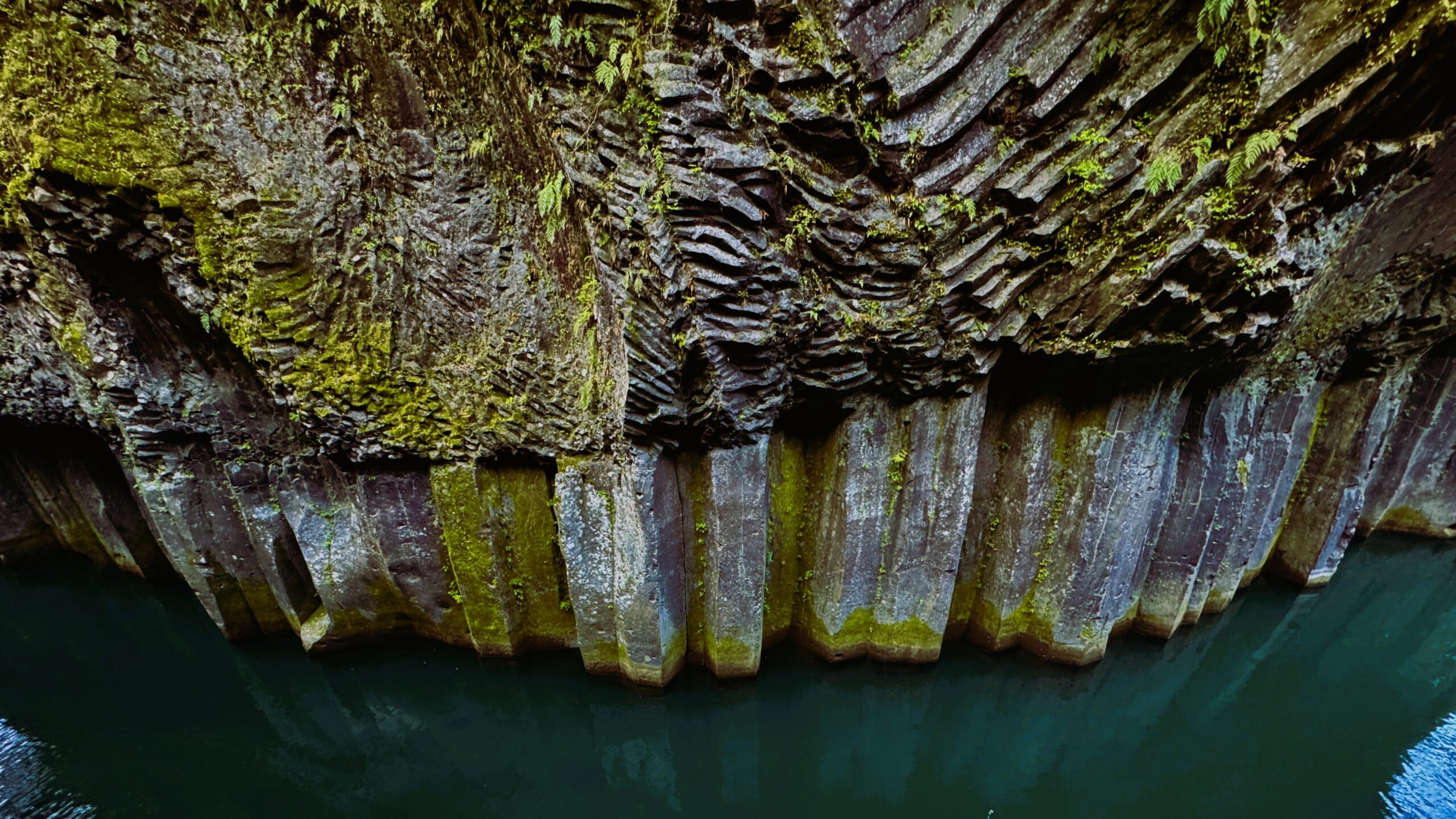 阿蘇火山活動で噴出した火砕流が五ヶ瀬川に沿って帯状に流れ出し、急激に冷却されてため柱状節理の見事な懸崖となった。