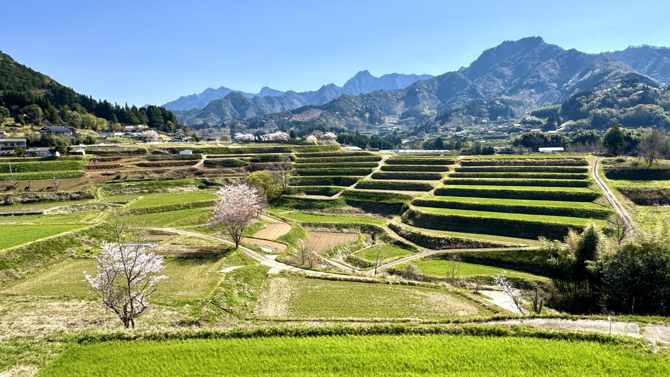高千穂峡から天岩戸神社に向かう宮崎県道7号線沿いは、綺麗な棚田の景色が広がる