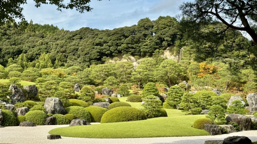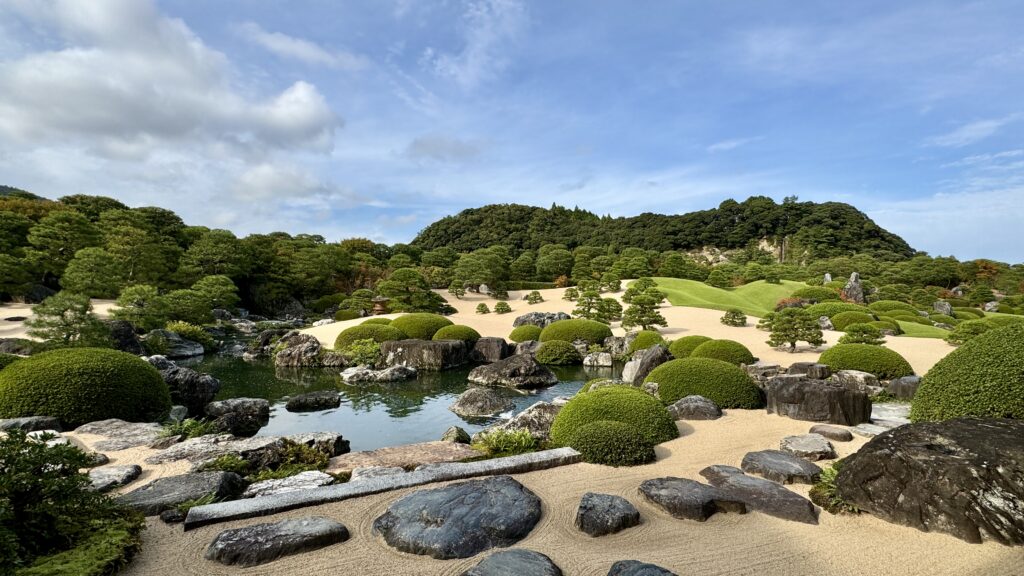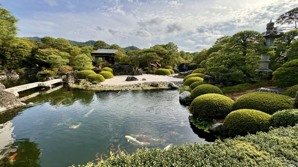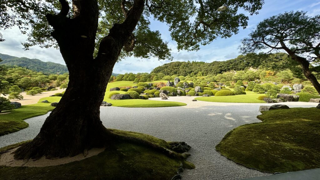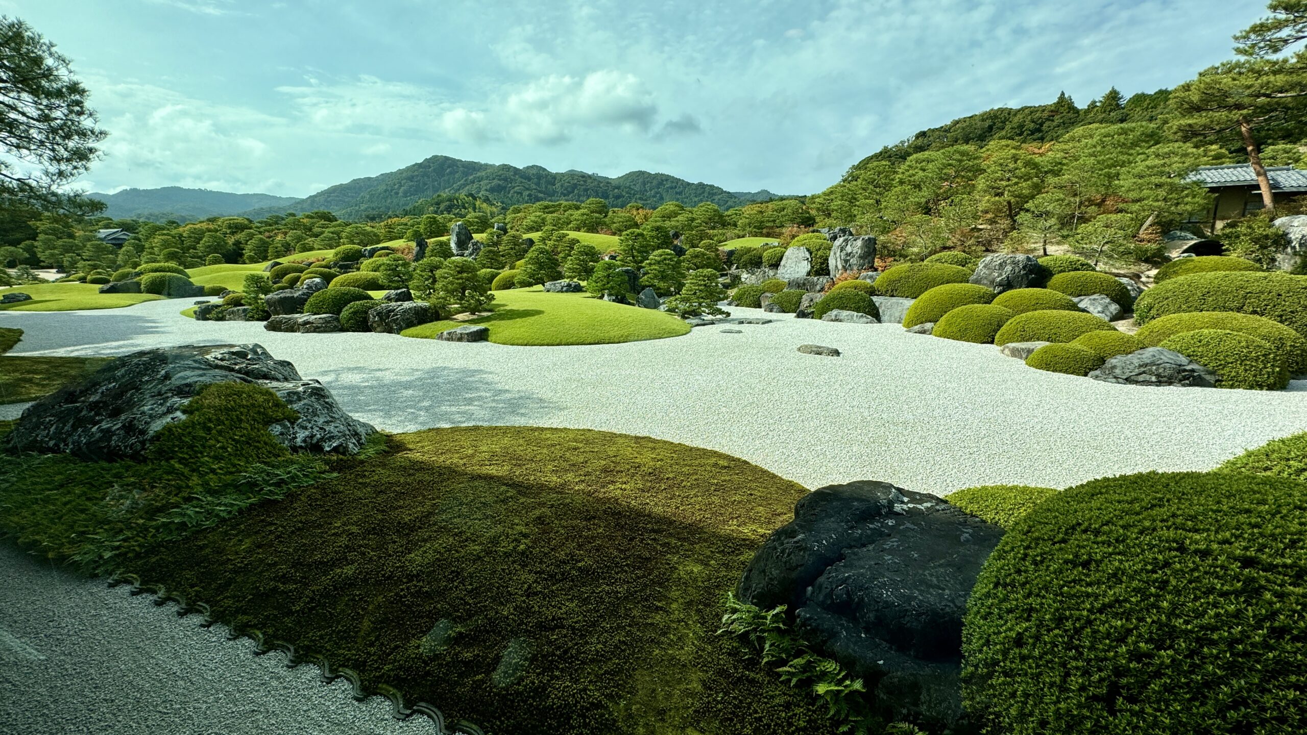 実業家 足立全康の「庭園もまた一幅の絵画である」の言葉の通り、見事な絵画のような日本庭園が訪れる人を魅了する。米誌で21年連続日本一に輝いた 50,000 坪の庭園である。