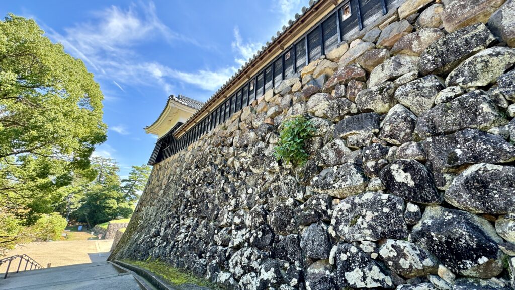 松江城の見事な石垣が訪れた人の目を引く。石垣の隅は「算木積み」といって長短の石垣が交互に積み重ねられている。この方法が一番崩れにくい、と400年以上前に人力でこの大きな石積みを繰り返す中で編み出された知恵の結晶。