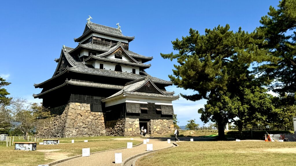 松江城は 慶長16年 (1611年) に建てられ、全国でも 12城しか残っていない現存天守 (江戸時代以前に建てられ壊れることなくその姿を現在に残すお城) のひとつで、国宝5城 (松江城、姫路城、彦根城、犬山城、松本城) のひとつでもある。