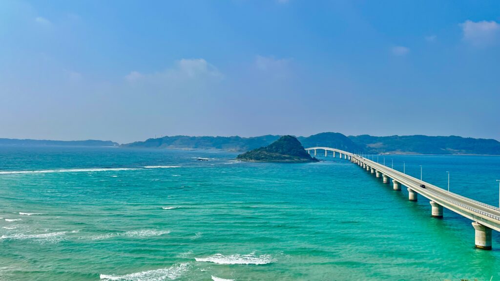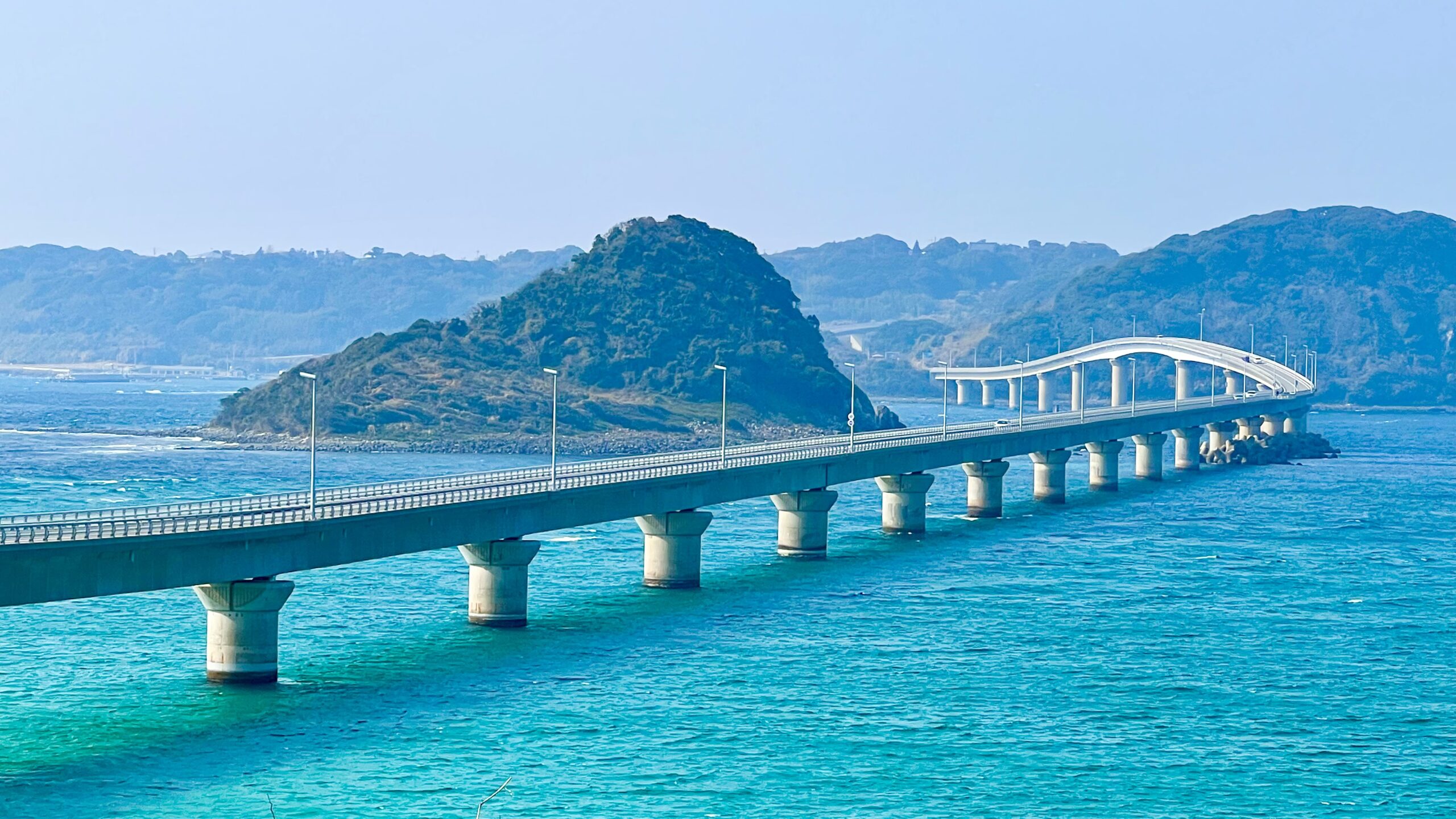 2000年に開通した下関市と角島を結ぶ「角島大橋」、全長1,780mで日本第2位を誇る。