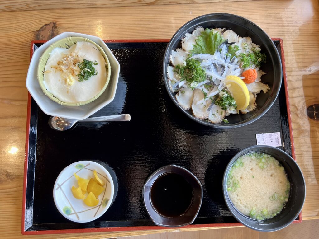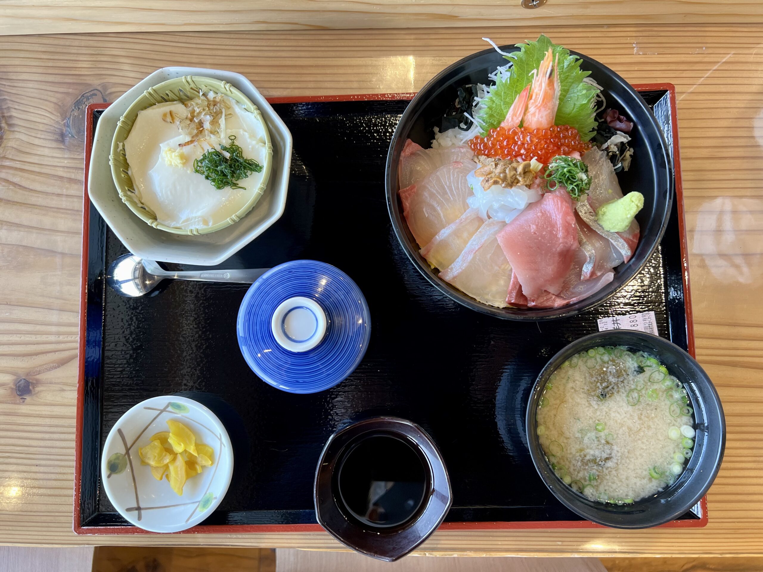 北長門海岸国定公園に指定され、綺麗な日本海を眺めながら北浦のとれたての海の幸を海鮮丼やお刺身で食べられる。