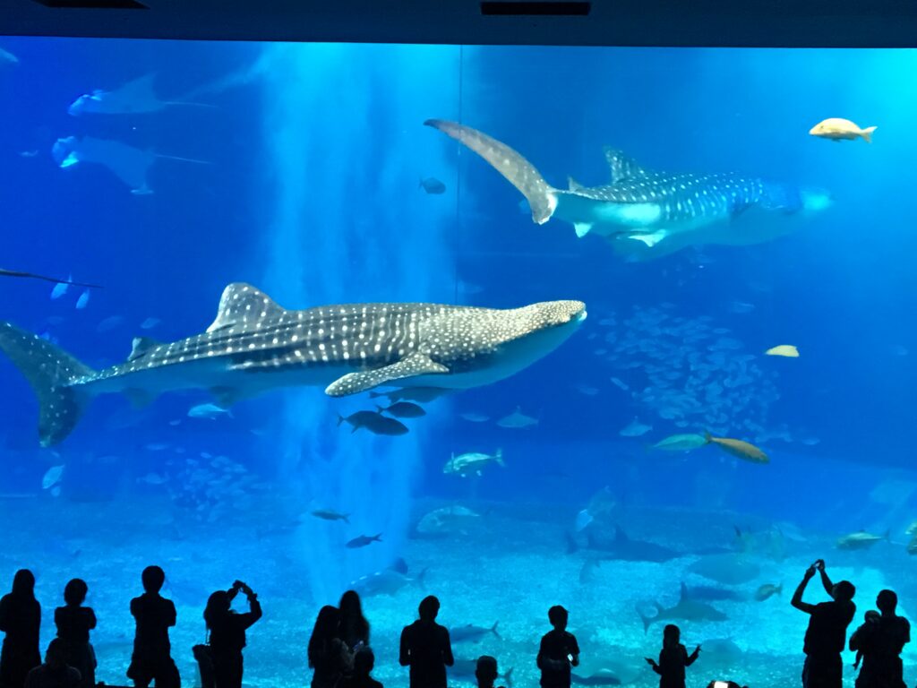 大水槽は高さ8.2m、幅22.5mもあり大きなジンベエザメ 全長8.8mのゆったりとした遊泳も十分に観察できる。