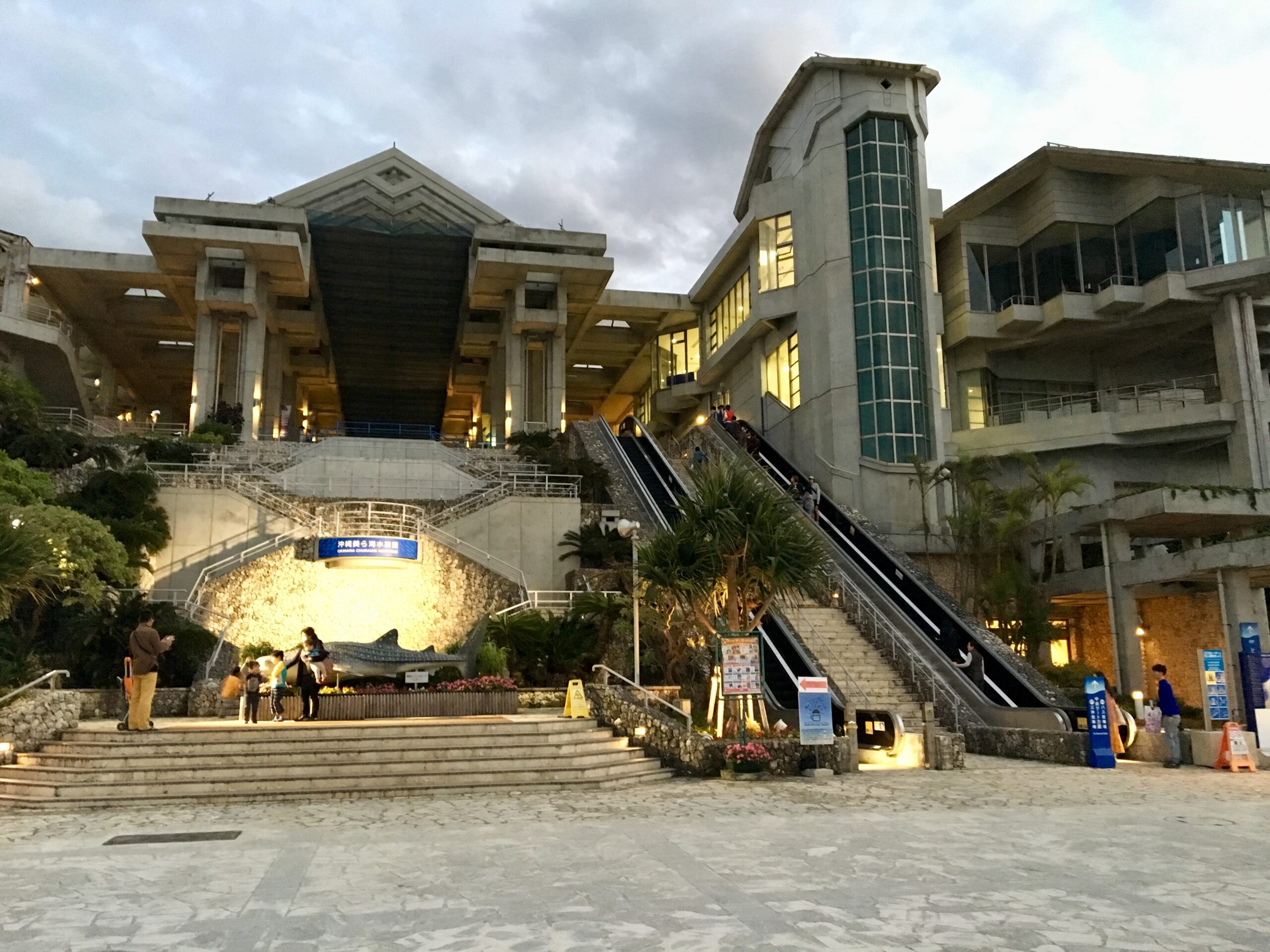 美ら海水族館の海側のエントランスはリゾート感覚の景観。