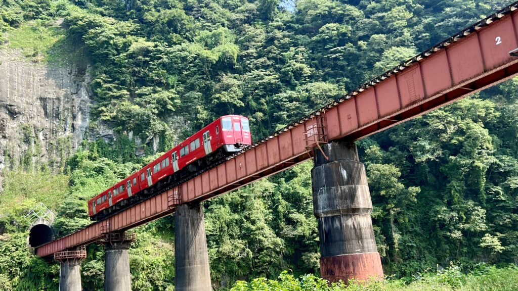そのトンネルからいきなり飛び出す電車の景観が鉄道ファンに大人気。