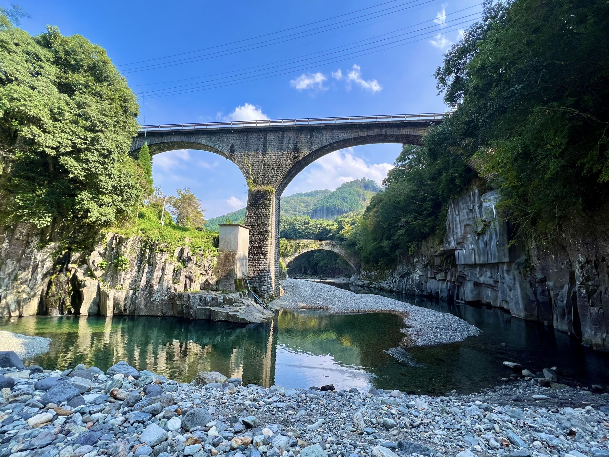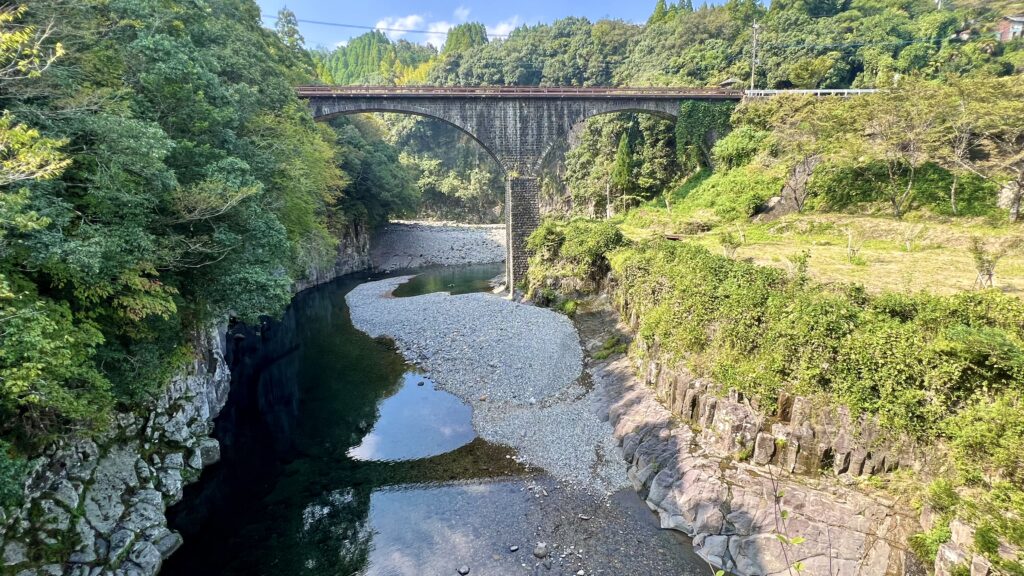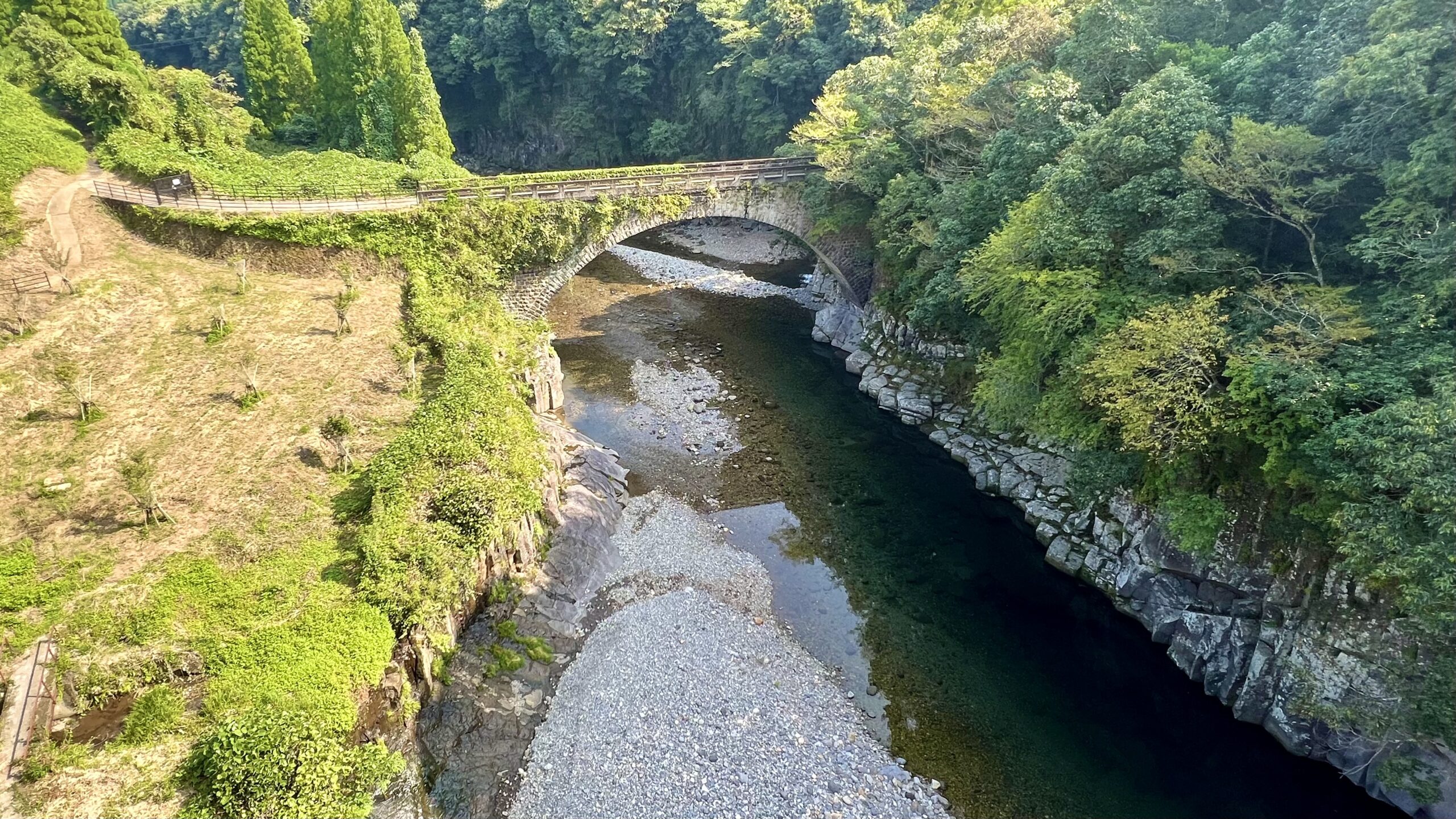 石橋のアーチ径間として日本1位と2位の橋が並んで架けられている貴重な場所。