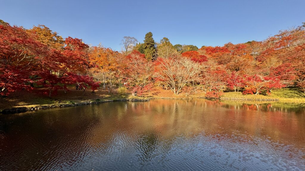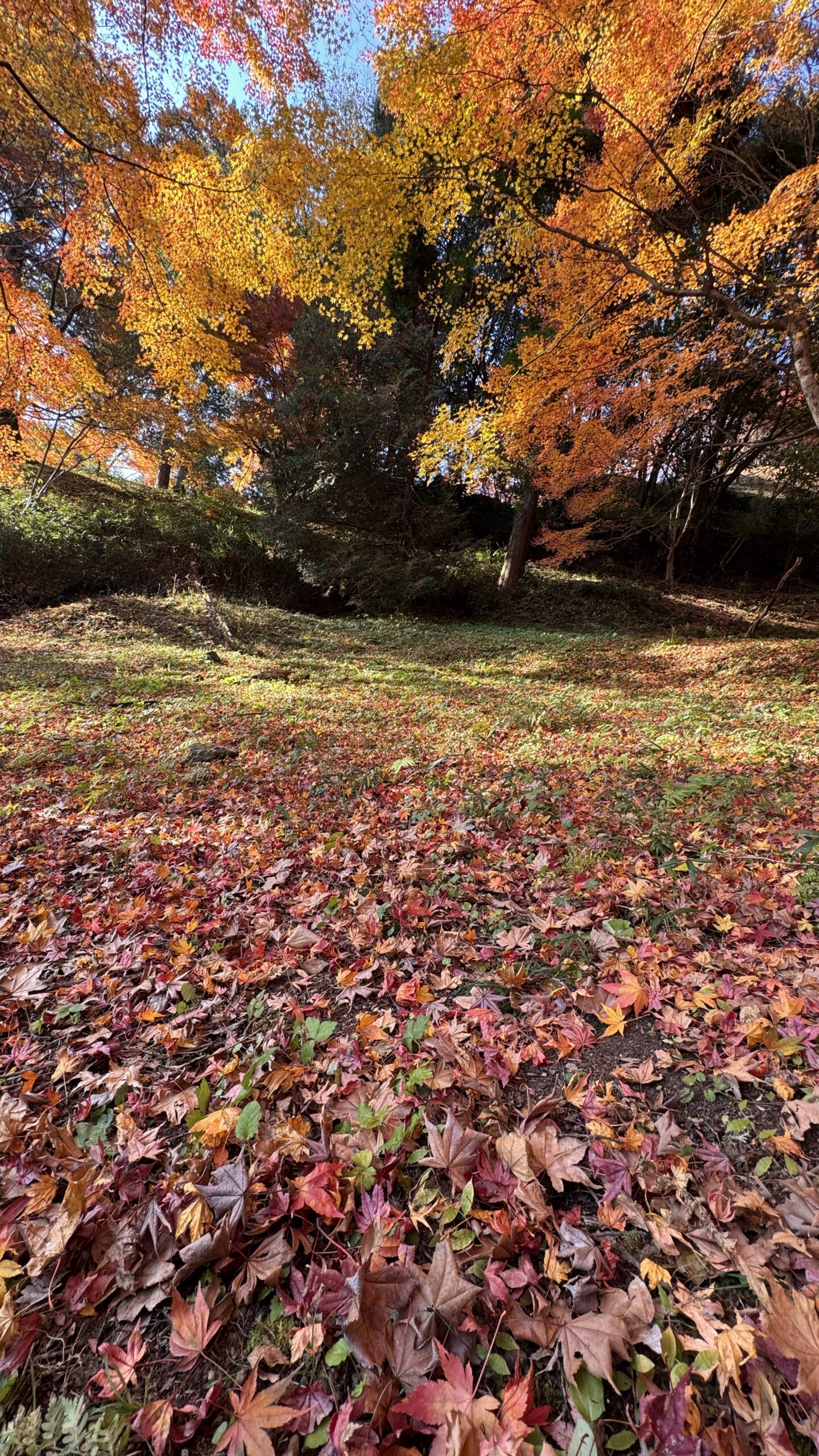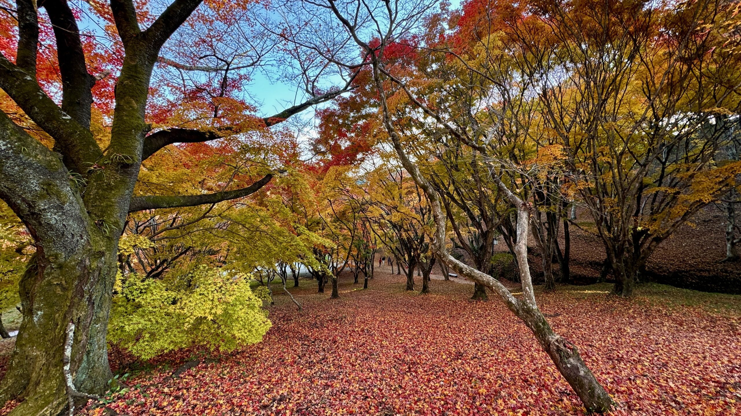 公園の敷地全面にぎっしりと敷き詰められた紅葉の絨毯に圧倒される。