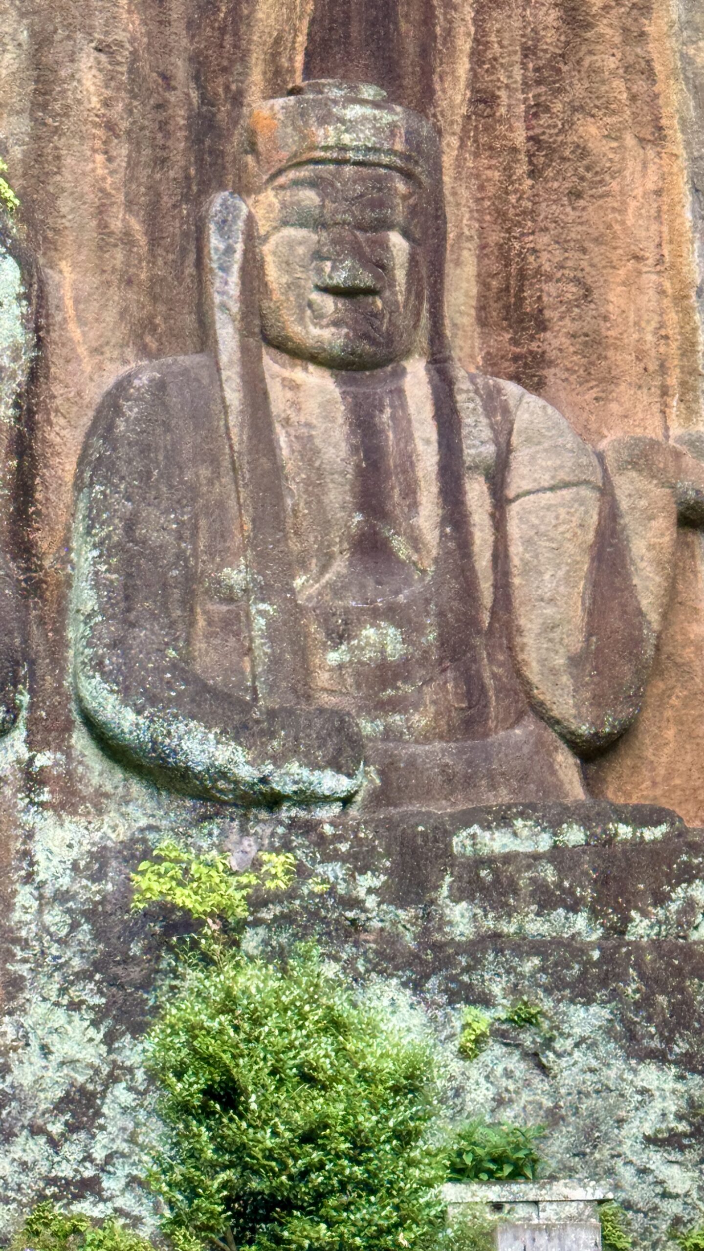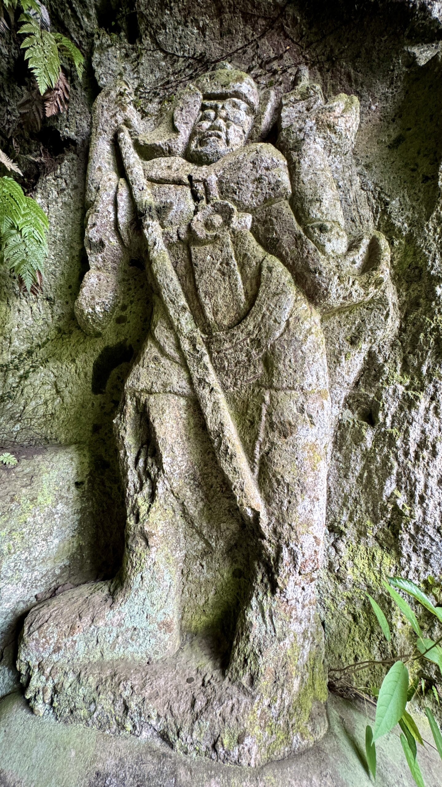 不動明王は普通は怖い顔をしているが、この摩崖仏は長年風雨にさらされ丸く優しい表情になりとても親しみのもてる姿になっている。