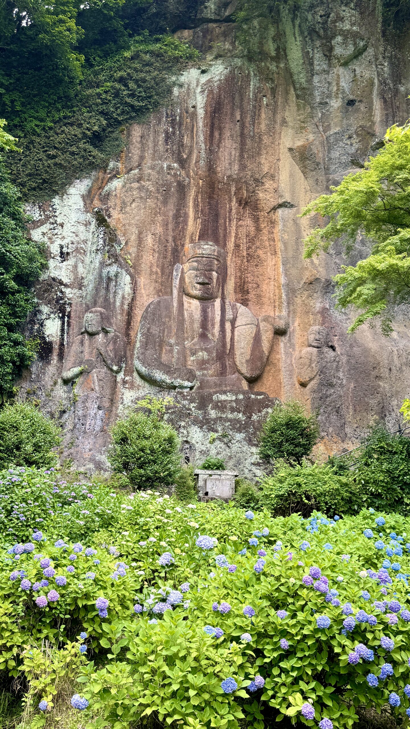 普光寺の摩崖仏とアジサイ