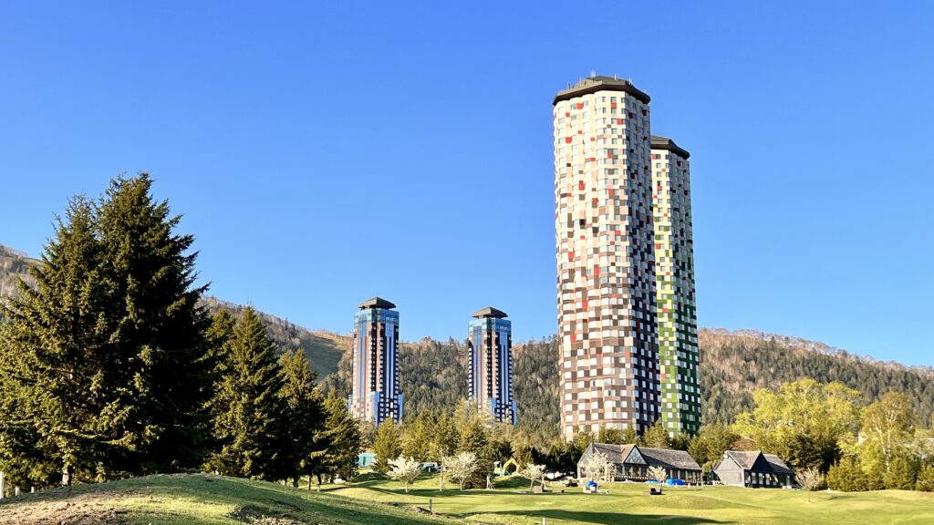 奥が昔からあるリゾナーレトマム、手前が新しい トマム・ザ・タワー。
