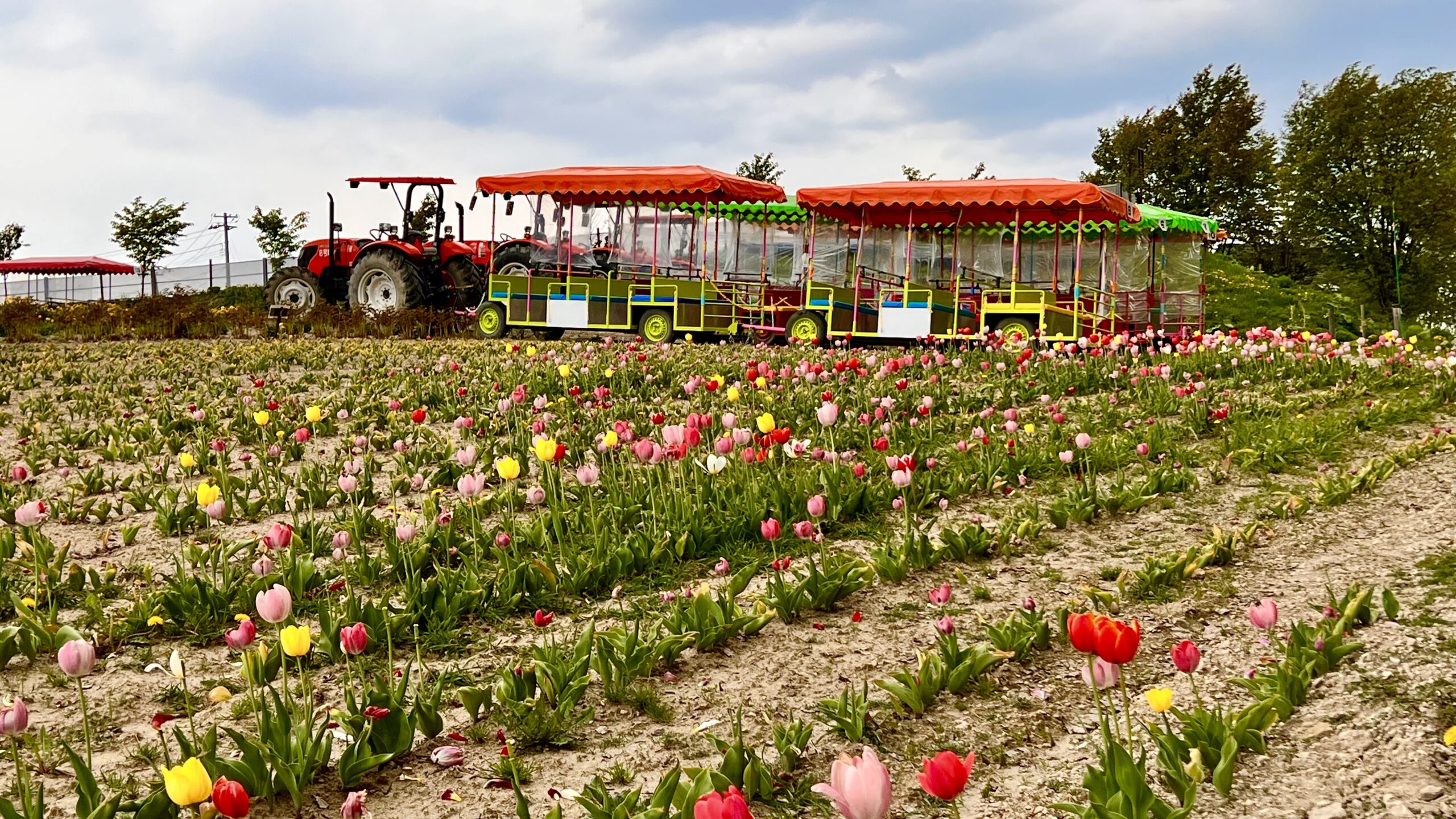 これからたくさん花が咲き、このかわいいトロッコバスにもたくさんのお客さんが!!