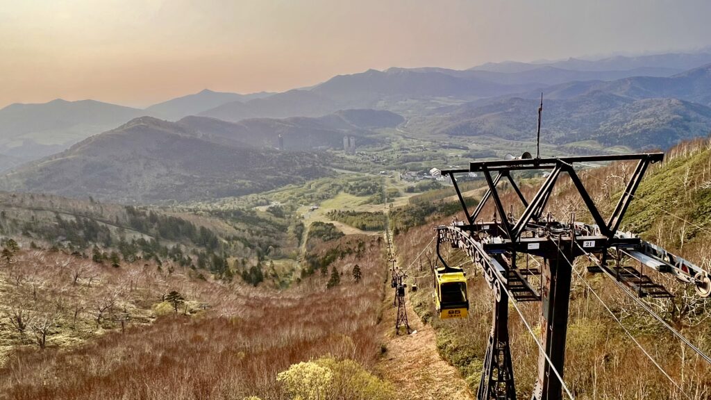 さあ、ゴンドラからツインタワーとトマムリゾートを眺めながら下山して朝食を。