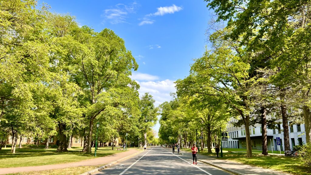 北海道大学構内、どこまで広いのか、並木がどこまで続くのか・・・